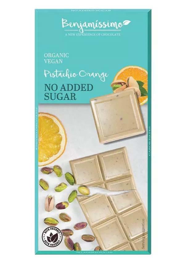 Ciocolata Alba cu Fistic si Portocale Fara Zahar Adaugat Eco 70 grame Benjamissimo